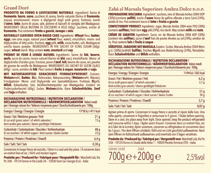 Il Gran Doré sabaudo con lo zabaione Riserva al Marsala Superiore Ambra dolce DOP 2004.