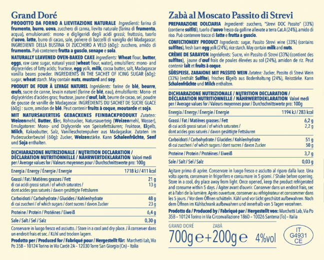 Il soffice Gran Doré, da gustare con Zabà al Moscato Passito di Strevi.